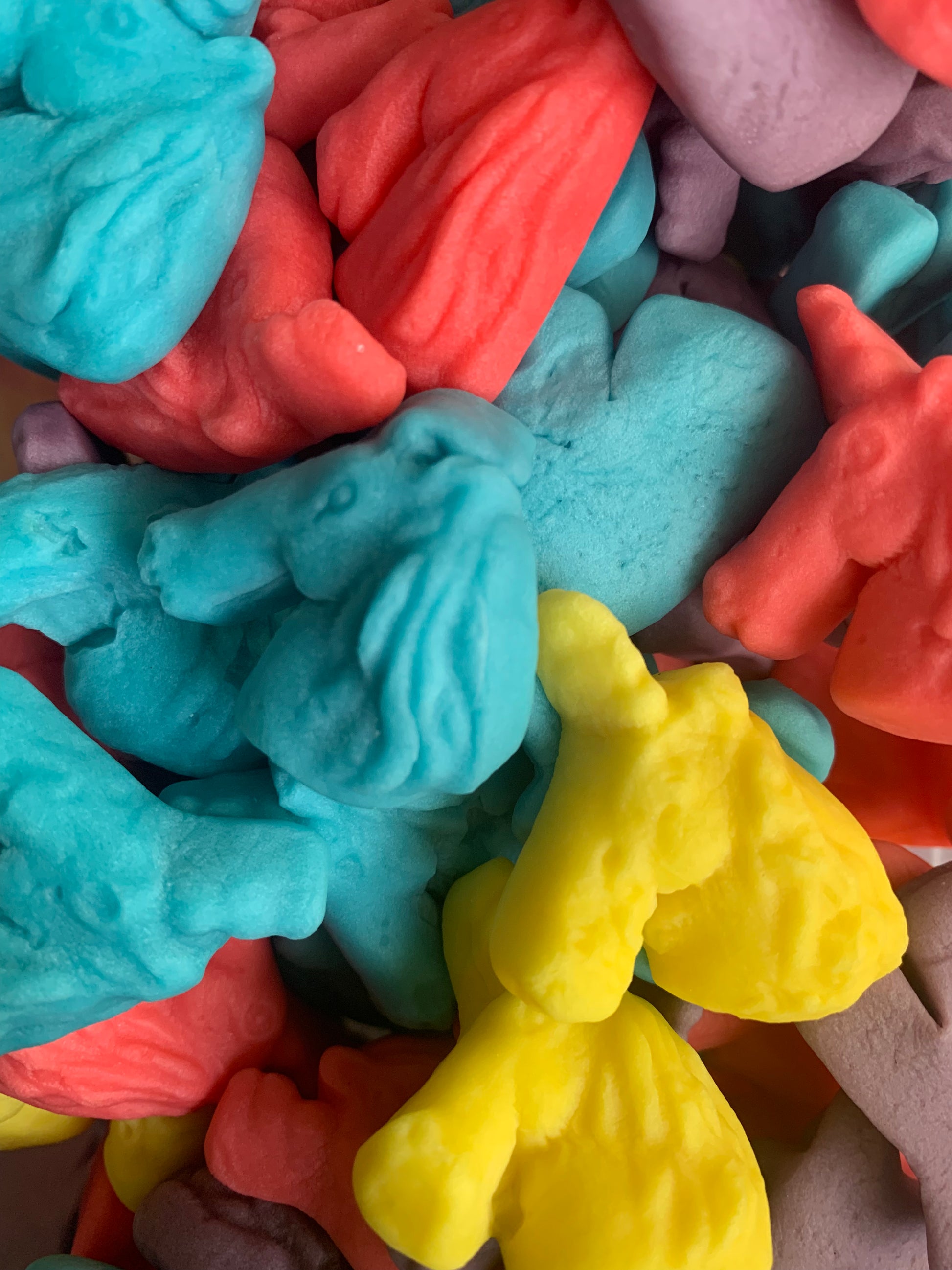 Bonbon Licorne gélifié lisse goût bubble gum rose, violet, jaune et bleu sans Glutten