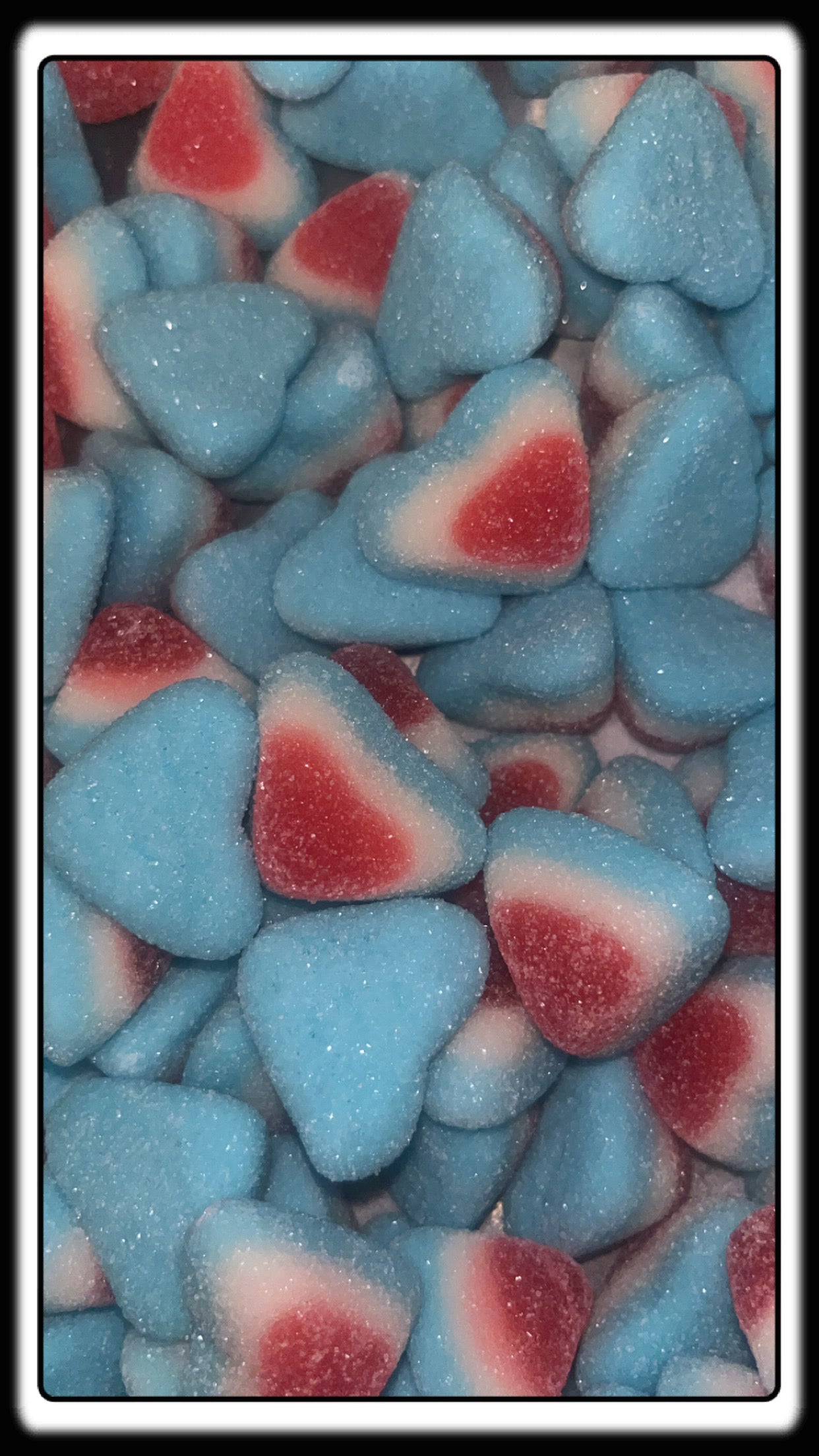 Ne résistez pas à cette confiserie en forme de cœur triple, triple couleur, enrobée de sucre. Un vrai délice à ne pas manquer !