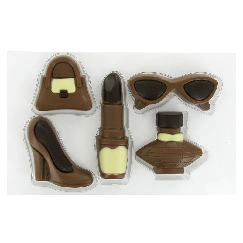 Coffret 100g Spécial GIRLS de 5 moulages. Moulages en chocolat au lait décoré :