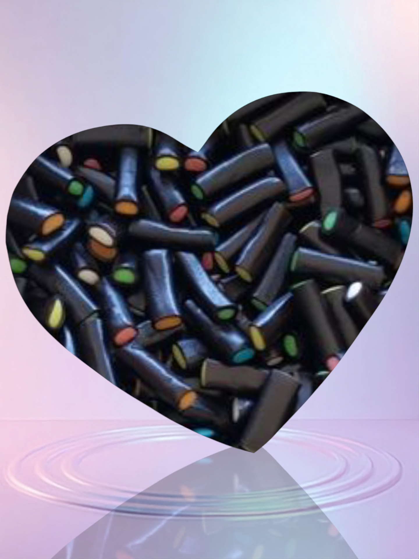 Assortiment de mini câble en bonbon gélifié lisse à la réglisse et fourré d'une pâte aromatisée.