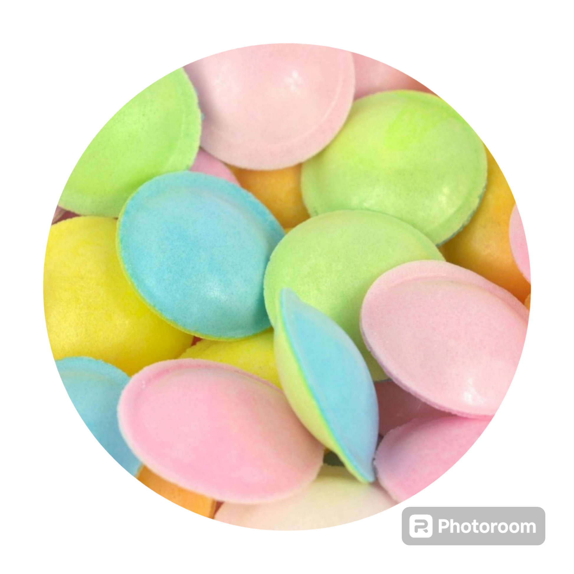 De délicieuse soucoupes fourrées poudre acidulée qui offrent un assortiment de couleurs et de goûts fruités et acidulés.